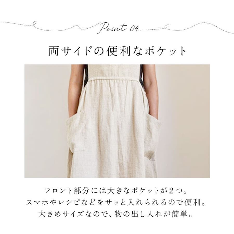 ・フロント部分には大きなポケットが2つ!スマホやレシピなどをサッと入れられるので便利!大きめサイズなので、物の出し入れが簡単。