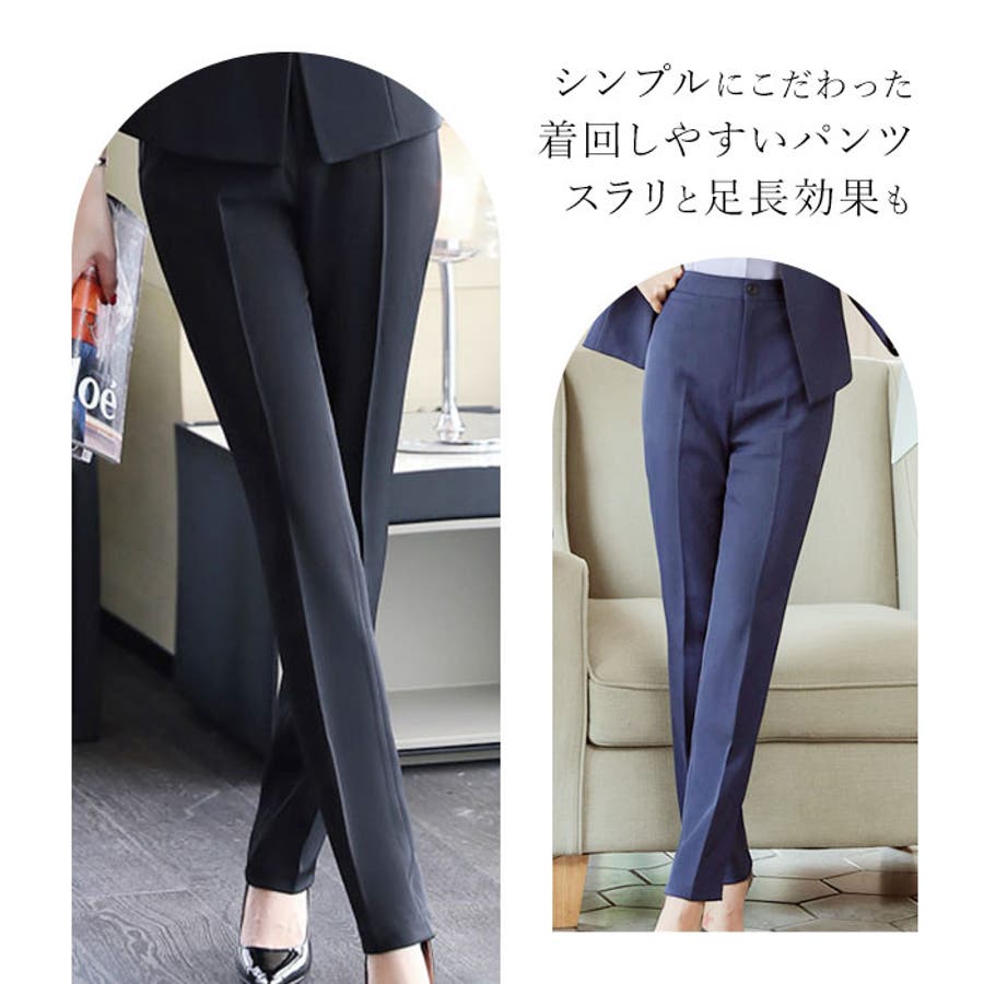 ・パンツのセンタープレスと、大きすぎない肩パッド入でシルエットがキレイにキマる♪シワになりにくい生地も◎