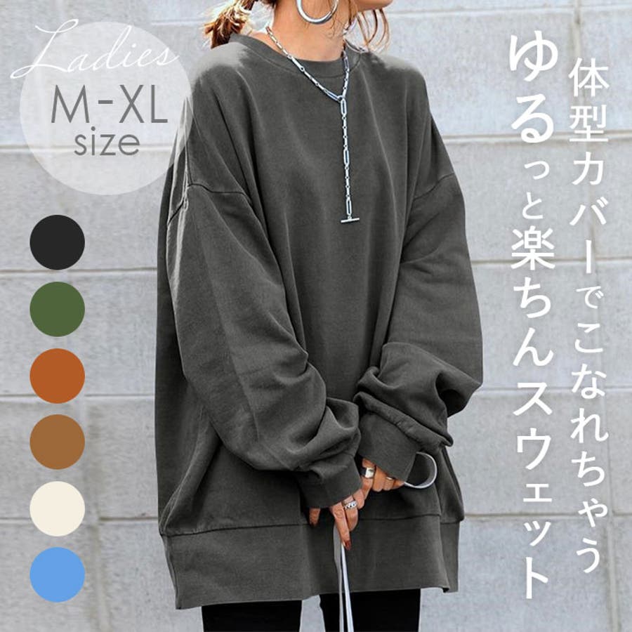 【キーワード】スウェット プルオーバー セーター ラウンドネック 長袖 体型カバー ゆったり 丈 長め 丸首 春 冬 秋 無地 シンプル 通勤 通学 カジュアル 春物 秋物 冬物 おしゃれ トップス