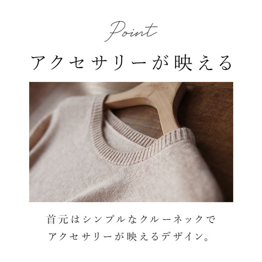 ・アクセサリーが映えるシンプルなクルーネックデザイン。