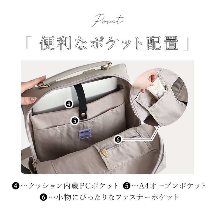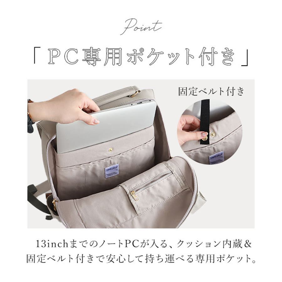 ・A4がすっぽり、13インチのPCが収納できるクッションポケット付き!PCを楽々持ち歩き◎