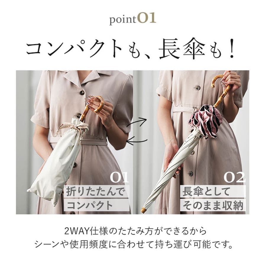 ・折ればコンパクト、折らずに長傘として。気分に合わせて使える2WAY仕様。