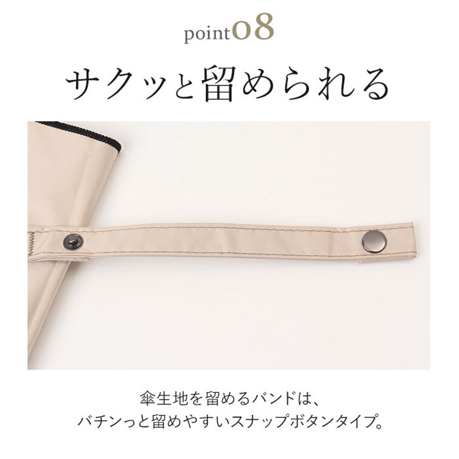 ・傘生地を留めるバンドは、バチンっと留めやすいスナップボタンタイプ。嬉しい2段階式。
