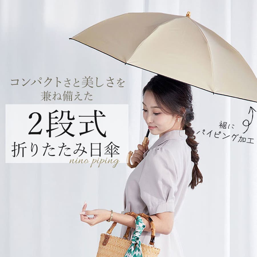 ・コンパクトさと美しさを兼ね備えた「nino piping 2段式折りたたみ日傘」が新登場。