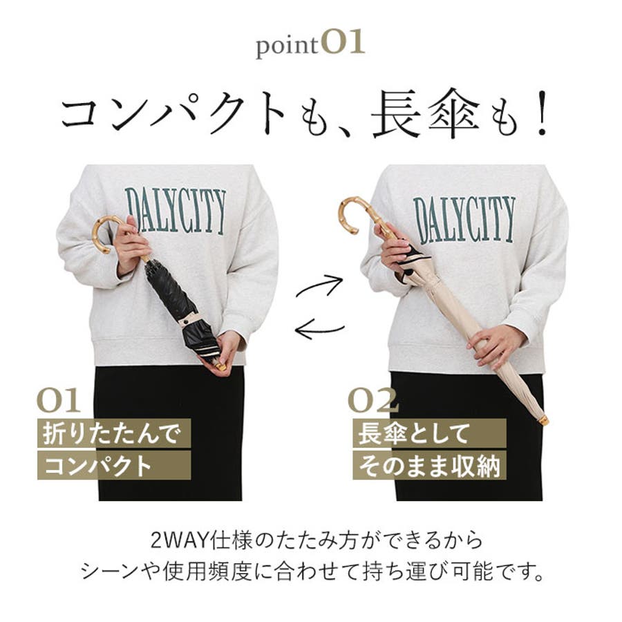 ・折ればコンパクト、折らずに長傘として。気分に合わせて使える2WAY仕様。
