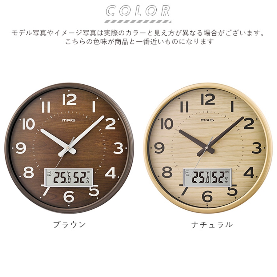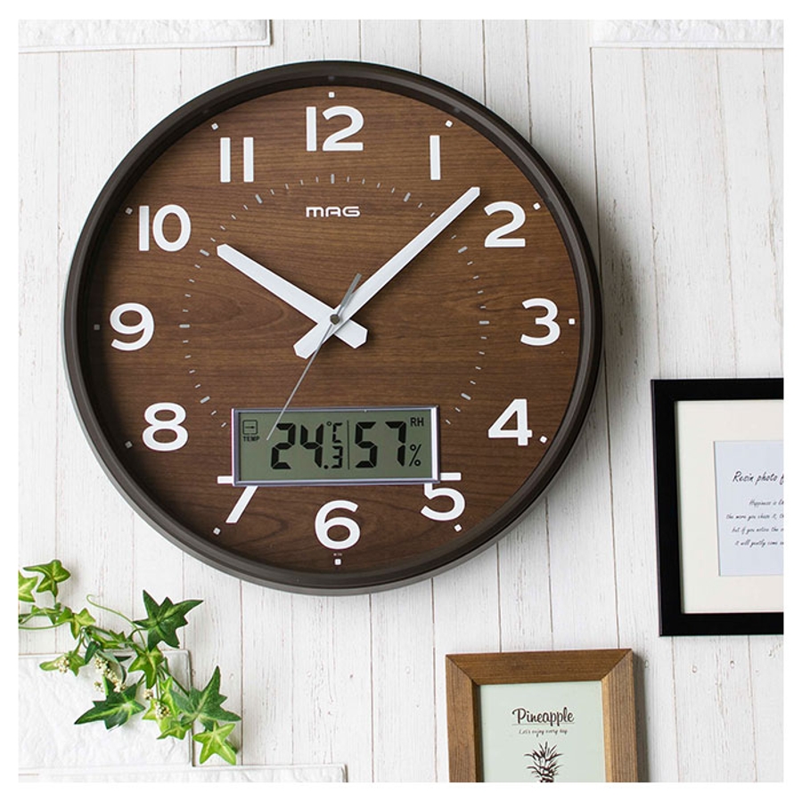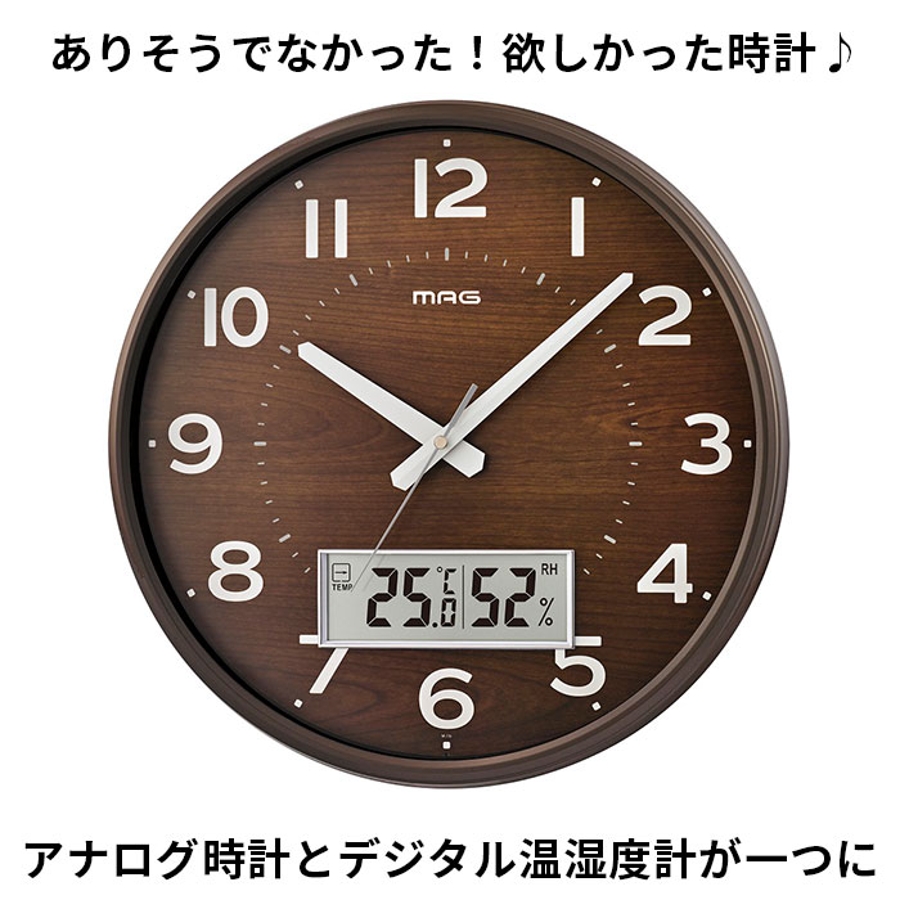 【キーワード】電波時計 電波 アナログ時計 デジタル時計 おしゃれ シンプル ナチュラル 木目調 ウッド調 温度表示 温度計 湿度表示 湿度計 夜間秒針停止 ステップ秒針 MAG マグ W-776 デジアナ電波掛時計 ゴーフル 壁掛け時計 インテリア