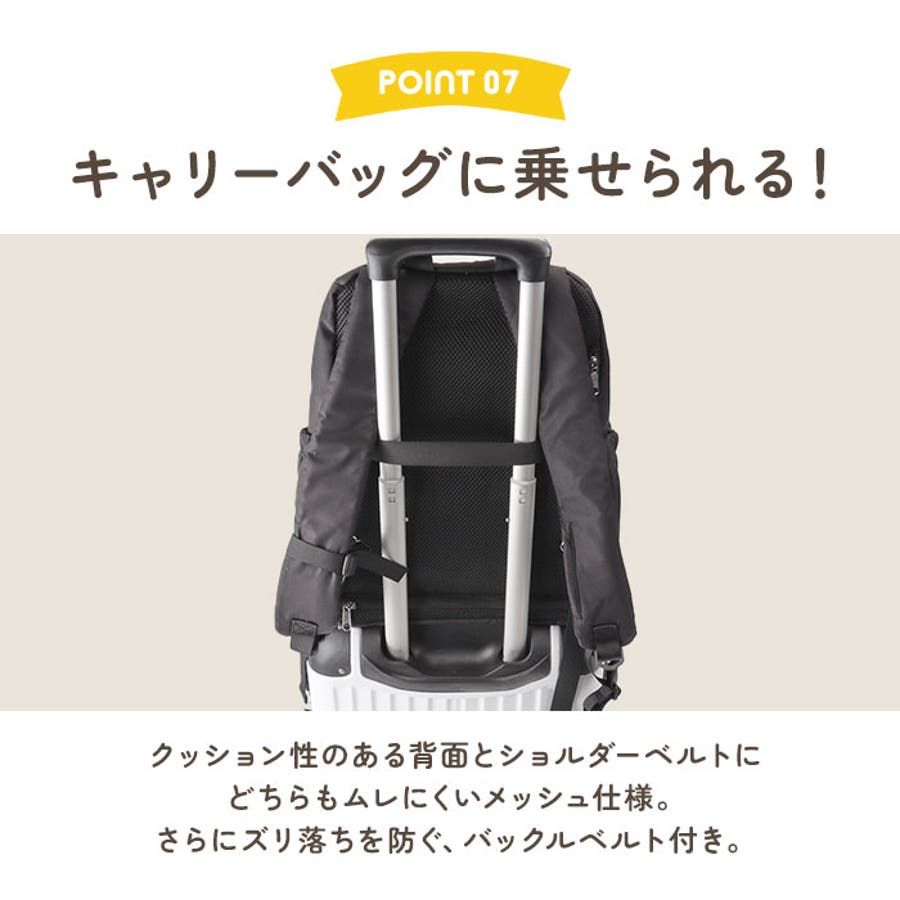 ※背面のベルトをキャリーのハンドルに差し込める、キャリーオンタイプ。