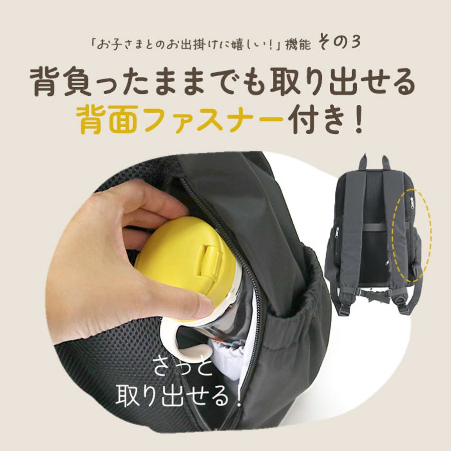 ・リュックを背負ったままでも背面ファスナーを開いて、荷物の取り出しが可能。