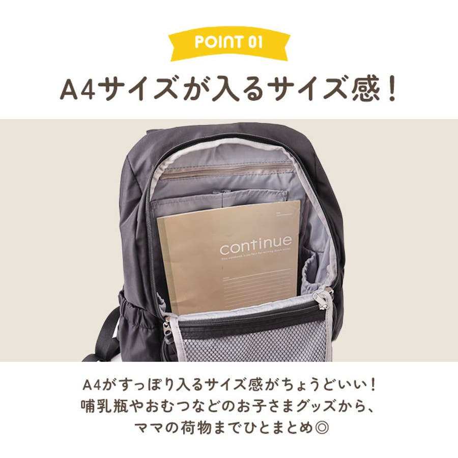 ・A4がすっぽり。哺乳瓶やおむつなどのお子さまグッズから、ママの荷物までひとまとめ◎