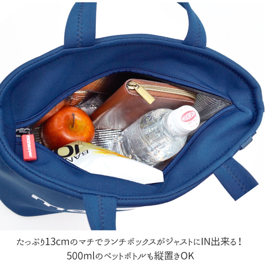 ・たっぷり13cmのマチでランチボックスがジャストにIN出来る!500mlのペットボトルも縦置きに収まる使い勝手のいいサイズで、パパの通勤用ランチトートにオススメ!