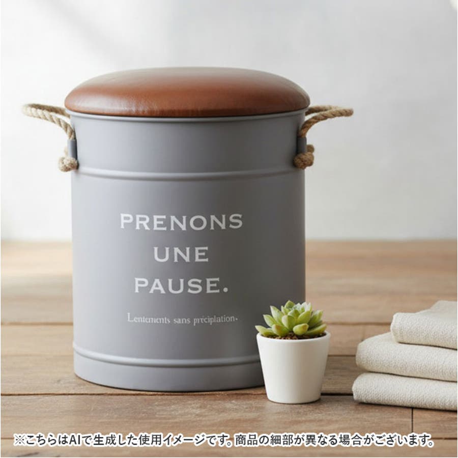 ・ペール缶にプリントされた「PRENONS UNE PAUE」のロゴは、フランス語で「ちょっと休憩にしましょう」という意味。アンティーク感のあるダスティーなカラーリングがお部屋の素敵なワンポイントに。