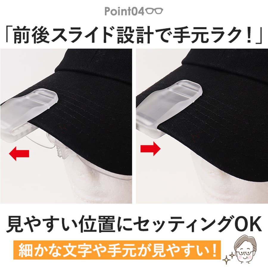 ・帽子のツバにワンタッチで装着!ポケットもバッグもかさばらない新しい老眼スタイル。