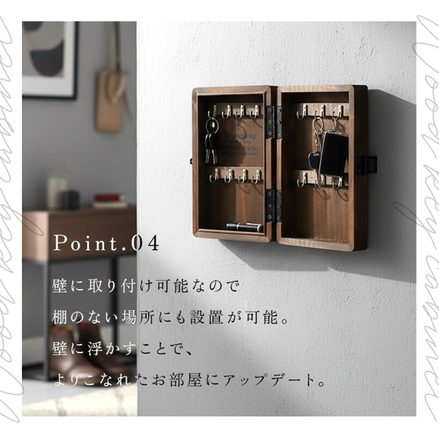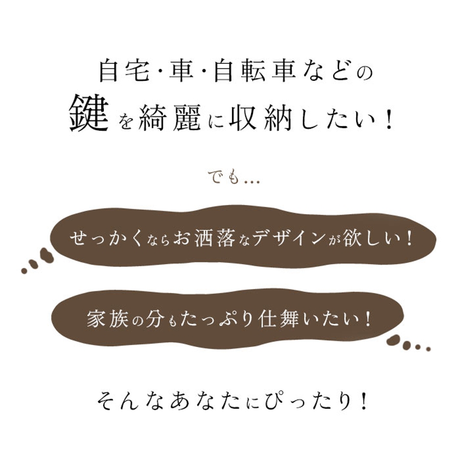 ・自宅のカギや自動車のスマートキーはもちろん、ご家族の分の自転車のカギもすっきり見やすくひとまとめにできるアンティーク風の木製キーボックス。