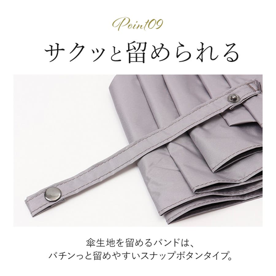 ・傘生地を留めるバンドは、バチンっと留めやすいスナップボタンタイプ。