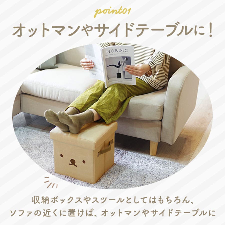 ・収納ボックスやスツールとしてはもちろん、ソファの近くに置けば、疲れた足を休ませるオットマンやサイドテーブルとしても大活躍。