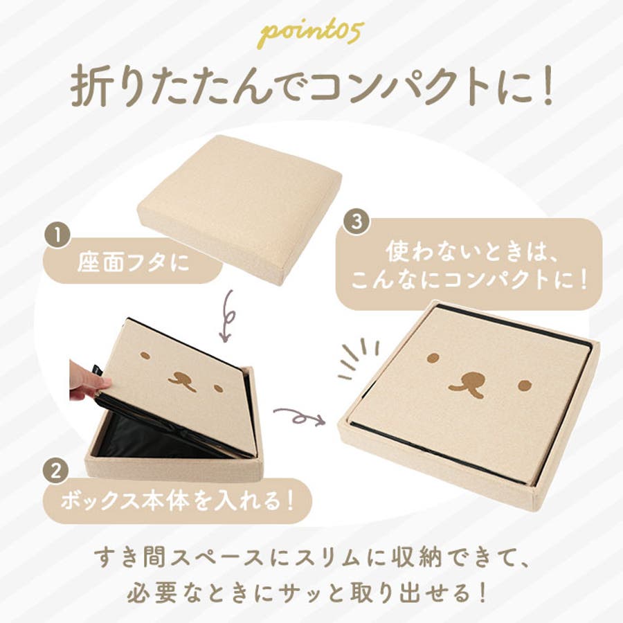 ・使わないときにはコンパクトに折りたたんで、ボックス本体を座面フタ部分に収納可能。すき間スペースにスリムに収納できて、必要なときにサッと取り出せる!