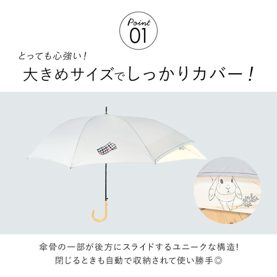 ・スライド部分のアニマルたちがかわいい傘はパッと目を惹き雨の日も楽しい気分に♪もちろん雨粒をしっかり弾くはっ水加工済み。
