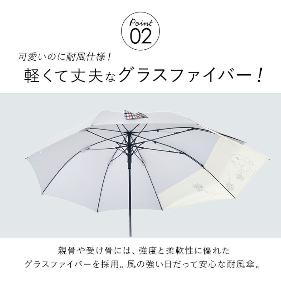 ・親骨や受け骨には、強度と柔軟性に優れたグラスファイバーを骨を採用。軽量でしなやかな素材なので、風の強い日も安心な耐風傘。