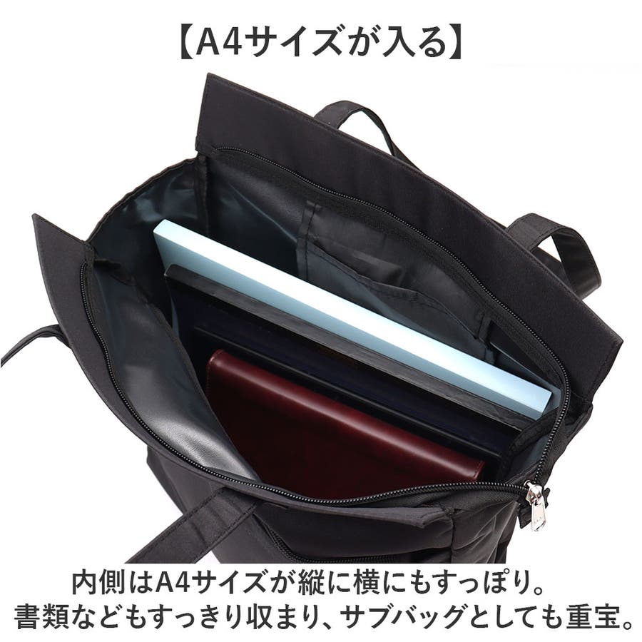 ・内側はA4サイズが縦に横にもすっぽり。書類などもすっきり収まり、サブバッグとしても重宝。