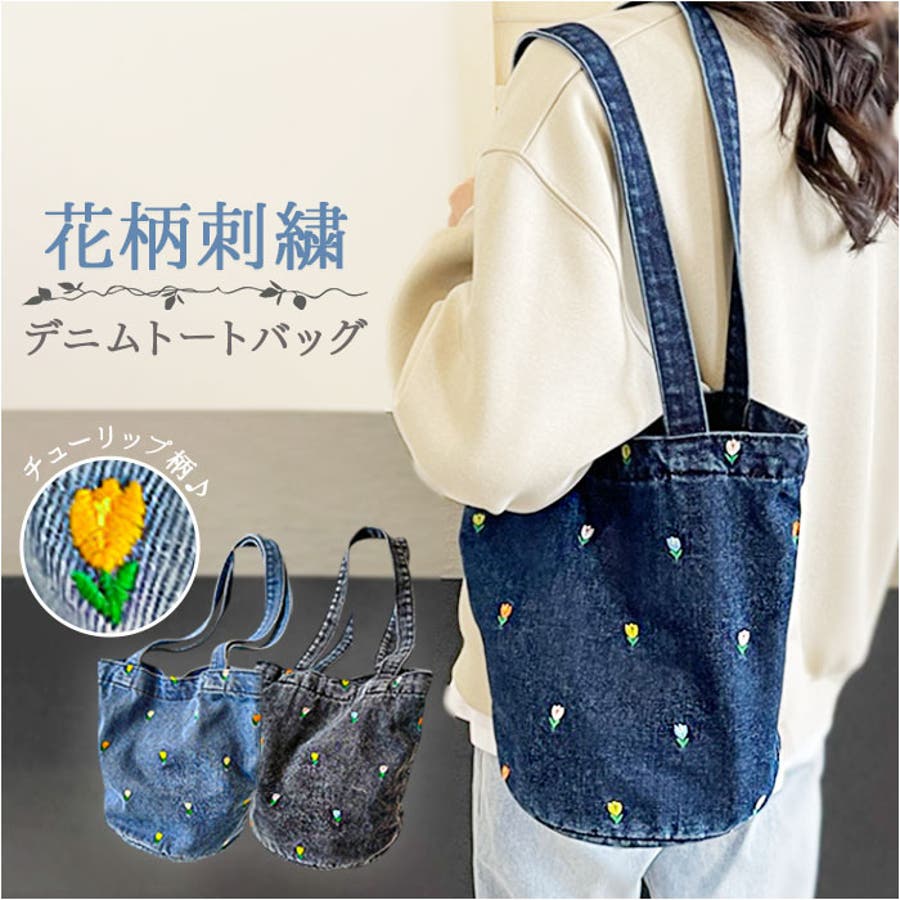【キーワード】トート デニムバッグ レディース 花柄 トートバック デニムバック バッグ バック 肩掛け 手提げ かばん 鞄 おしゃれ かわいい ショルダー ショルダーバッグ ハンドバッグ カジュアル ナチュラル ハンドバック マチあり