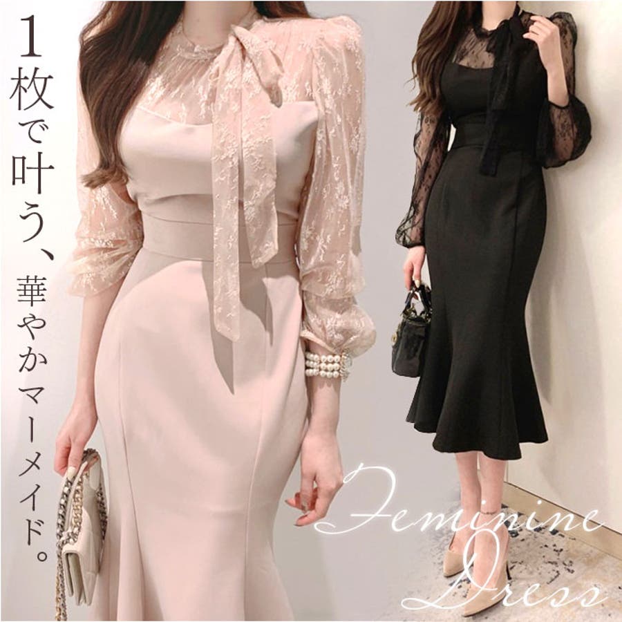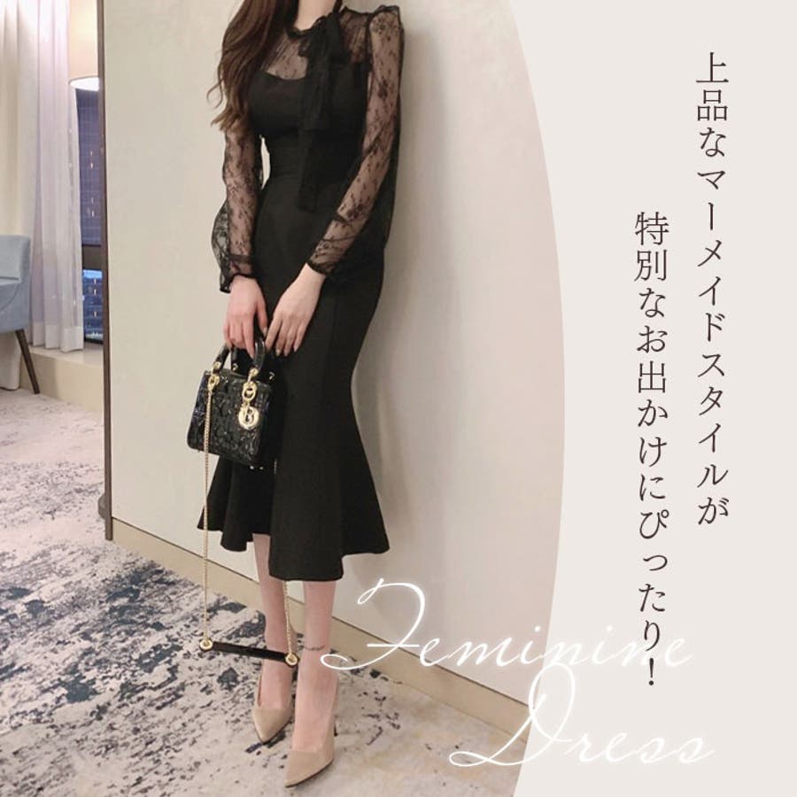 ・リボンとマーメイドスタイルが可愛い♪お呼ばれシーンにピッタリなワンピースドレス