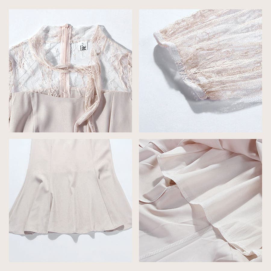 ・袖や胸上などの切り替えしにはレース生地を使用し華やかさと垢抜け感をプラス。
