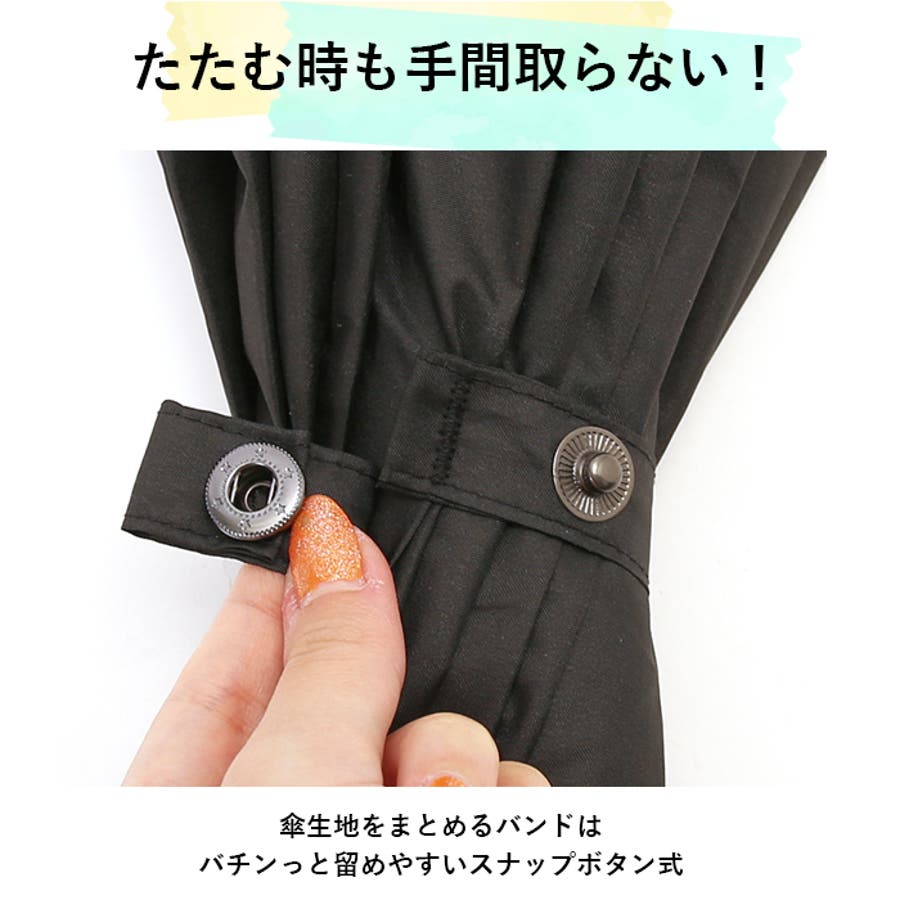・傘生地をまとめるバンドは、バチンっと留めやすいスナップボタン式。