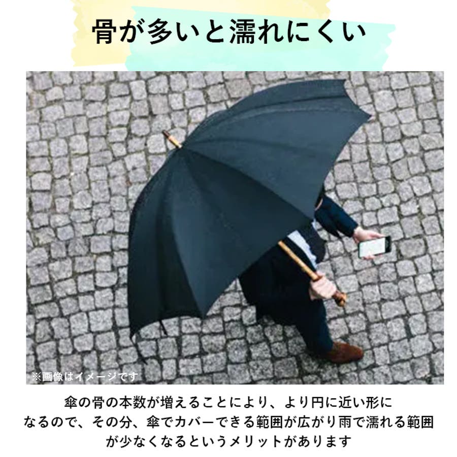 ・16本の傘骨を使用した丈夫なつくりで、強い風にも負けない耐風傘。