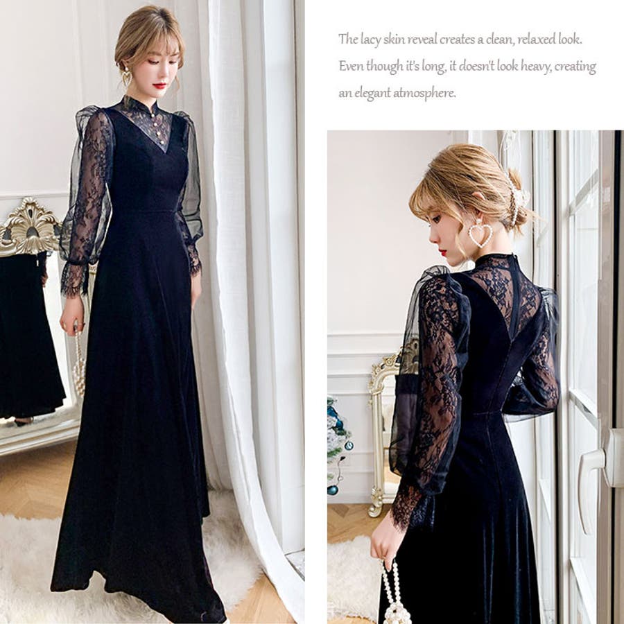 【キーワード】パーティードレス ロングドレス オケージョンドレス フォーマルドレス イブニングドレス 演奏会 お呼ばれドレス 披露宴 二次会 成人式 同窓会 おしゃれ かっこいい ピアノ発表会 黒 ブラック レディース