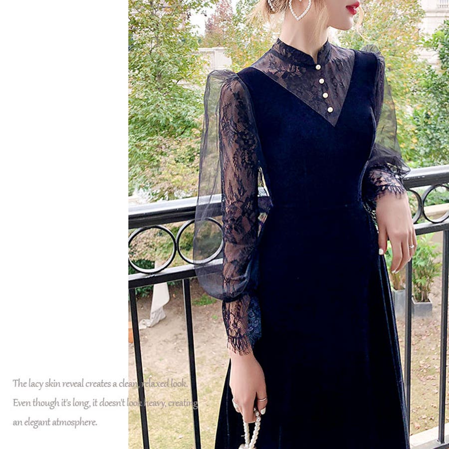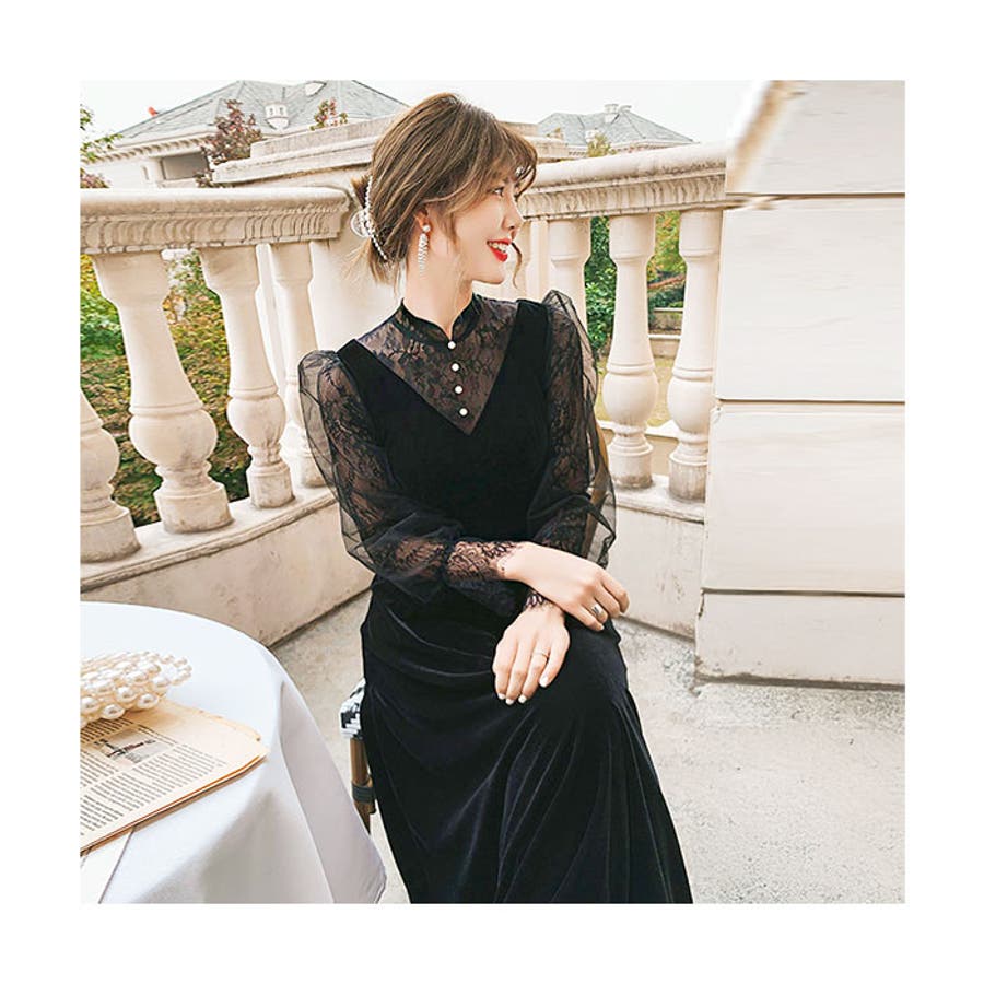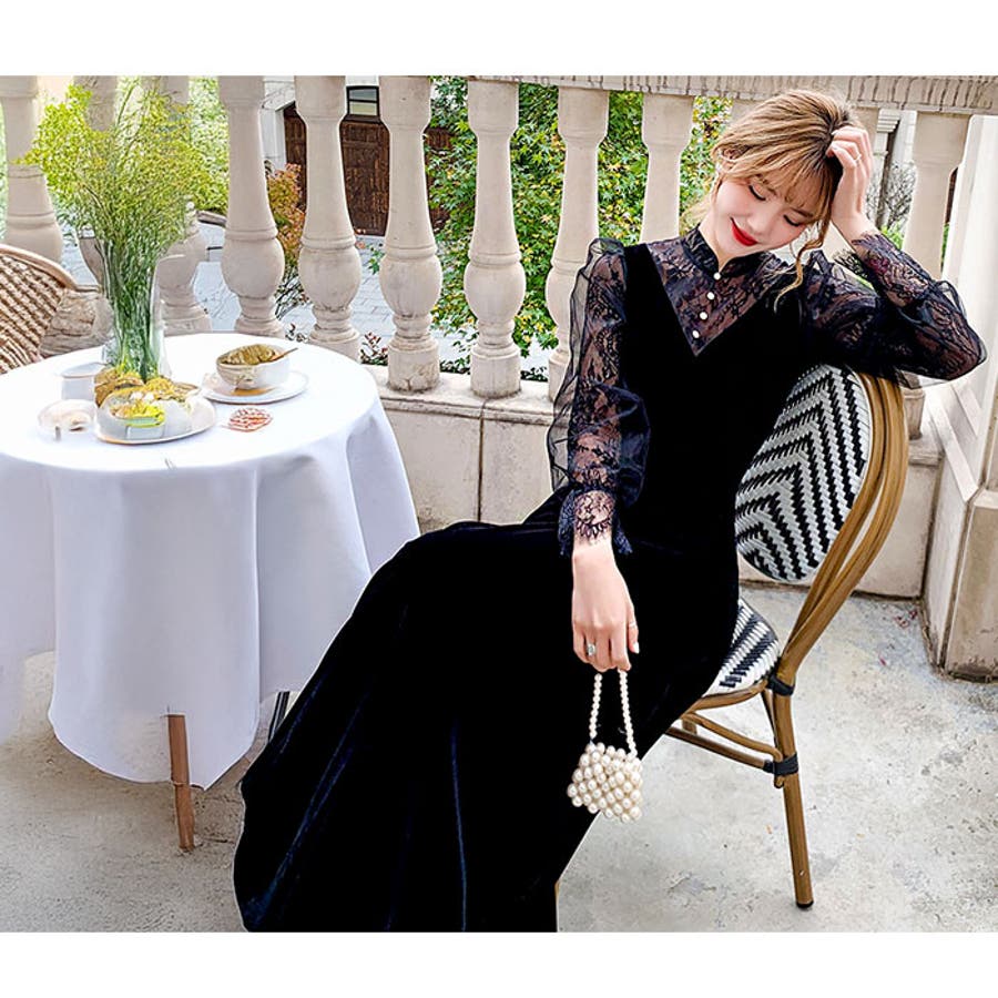 ・周りと差がつく、上品オケージョンスタイル☆パーティードレス ロング ベロア生地が登場。