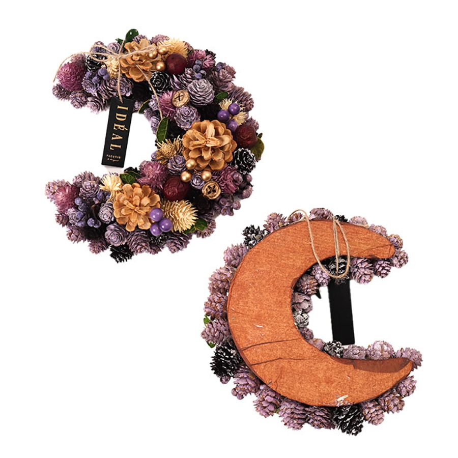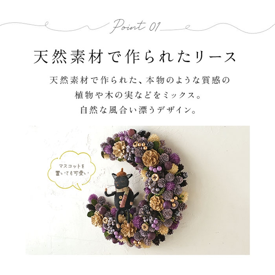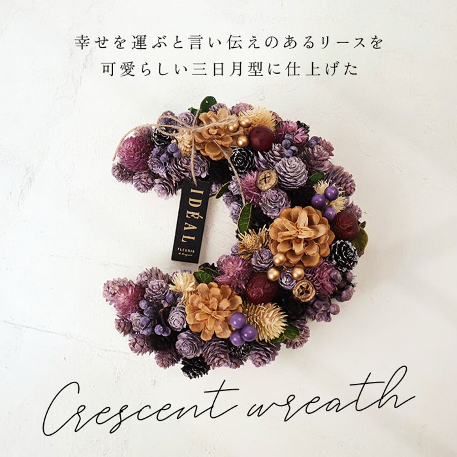 【キーワード】三日月リース オータムリース ドライリース Mサイズ 直径約25cm クレッセントリース GREEN HOUSE グリーンハウス 天然素材 三日月型 ハーフムーン ギフトボックス 玄関飾り 壁飾り おしゃれ インテリア雑貨