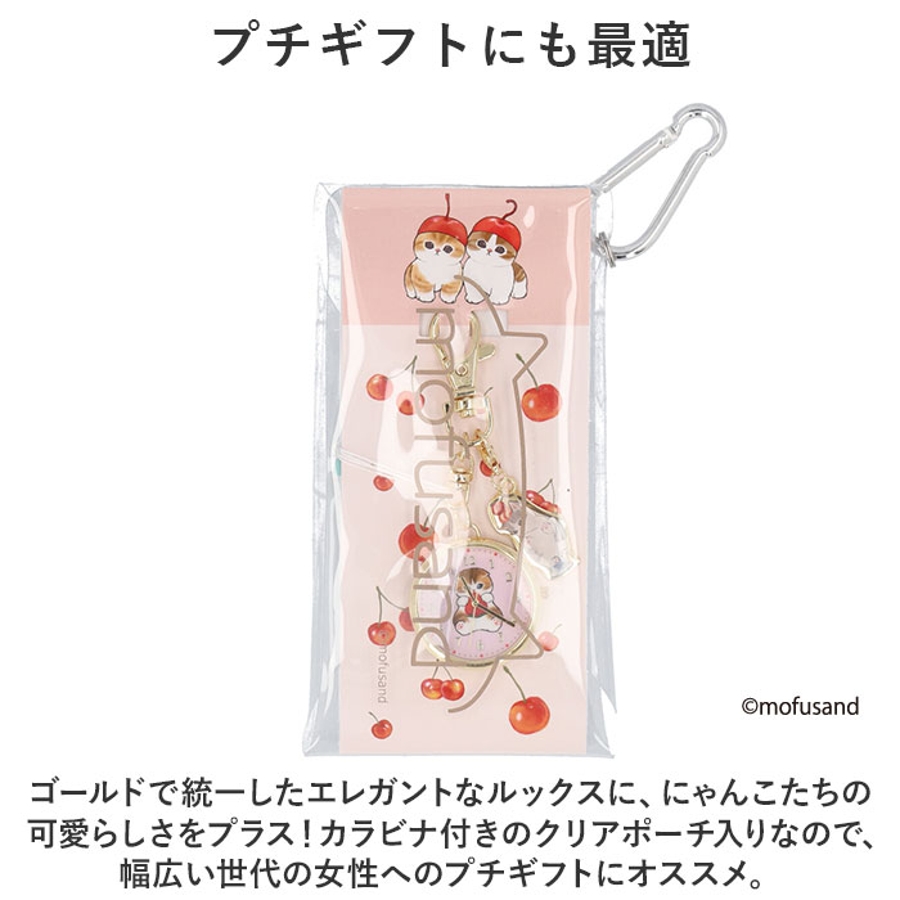 ・ゴールドで統一したエレガントなルックスに、モフモフねこちゃんの可愛らしさをプラス!カラビナ付きのクリアポーチ入りなので、幅広い世代の女性へのプチギフトにオススメ。