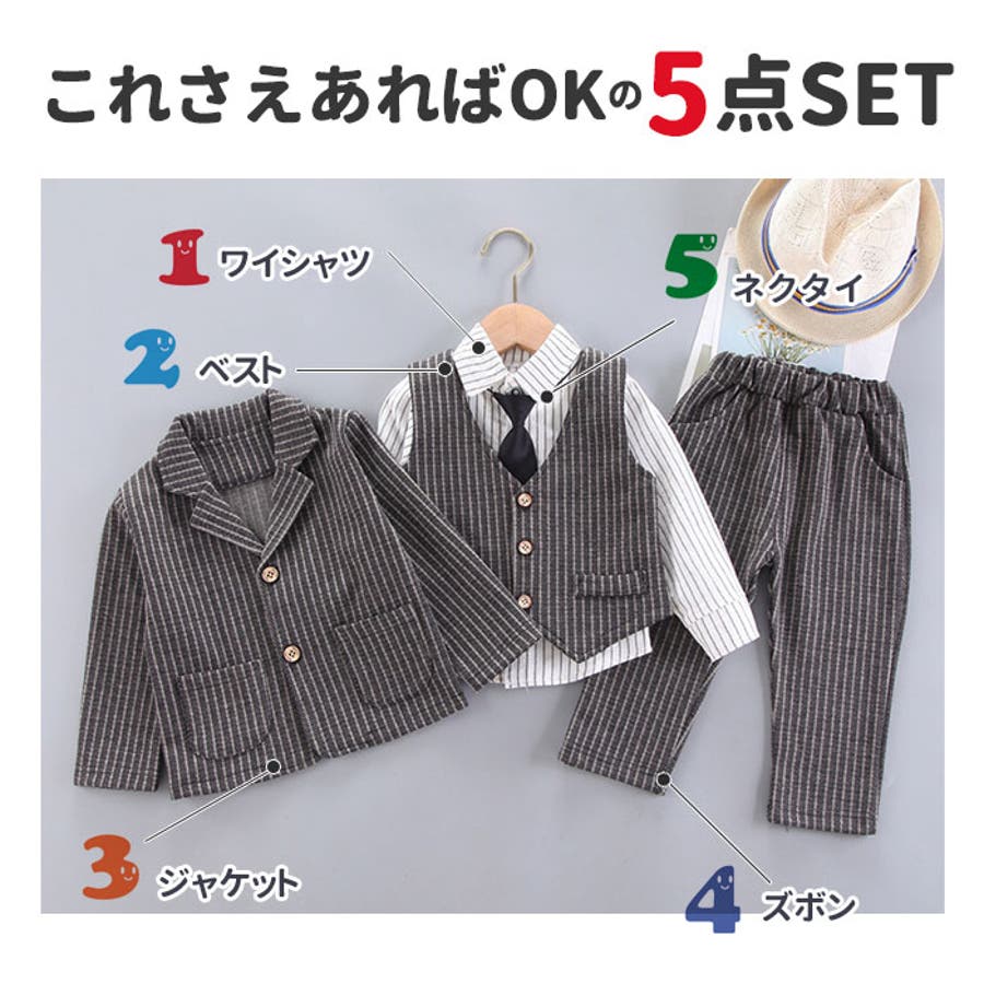 【キーワード】入園式 卒園式 ベビー服 スーツ 5点 セット 80 90 100 110 cm 子供 春 おしゃれ 赤ちゃん セットアップ ジャケット ネクタイ シャツ 発表会 七五三 子供服 キッズ ボーイズ