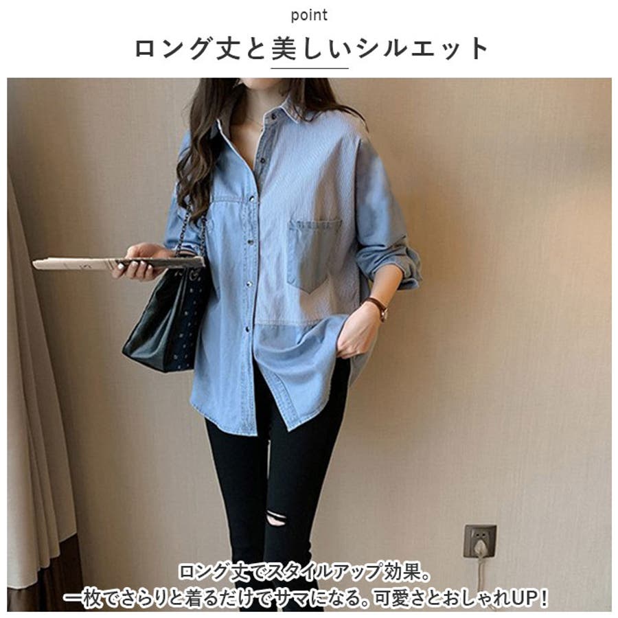【キーワード】長袖 襟付き シャツブラウス タンガリーシャツ ロング丈 トップス ウエスタン 通学 シンプル カジュアル きれいめ おしゃれ 大人 可愛い 春 夏 秋