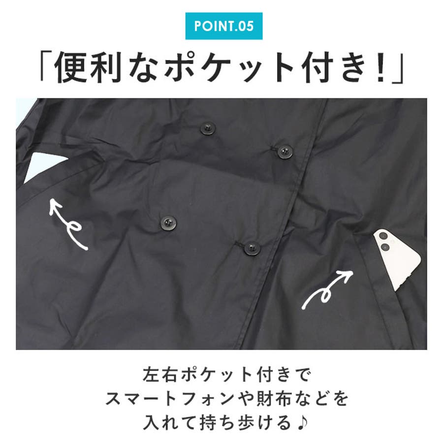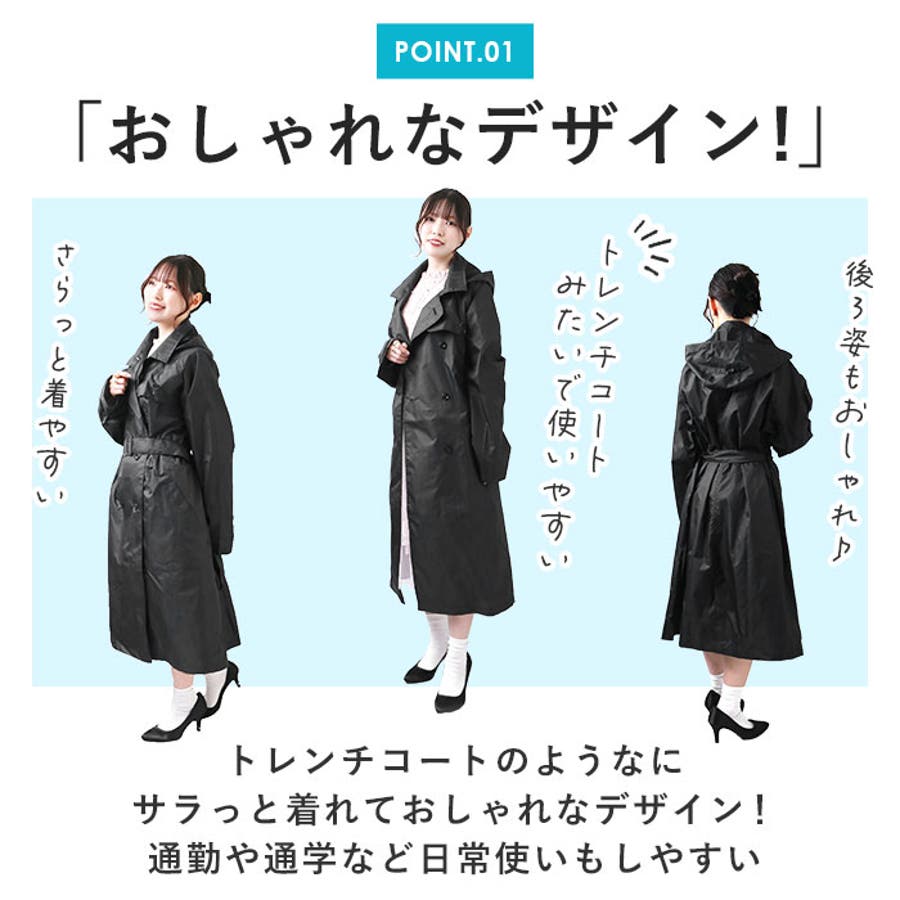・トレンチコートのようなおしゃれなデザインが特徴的。クラシカルなスタイルで、晴雨兼用のレインコートとしてもおしゃれに着こなす♪