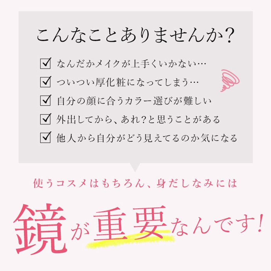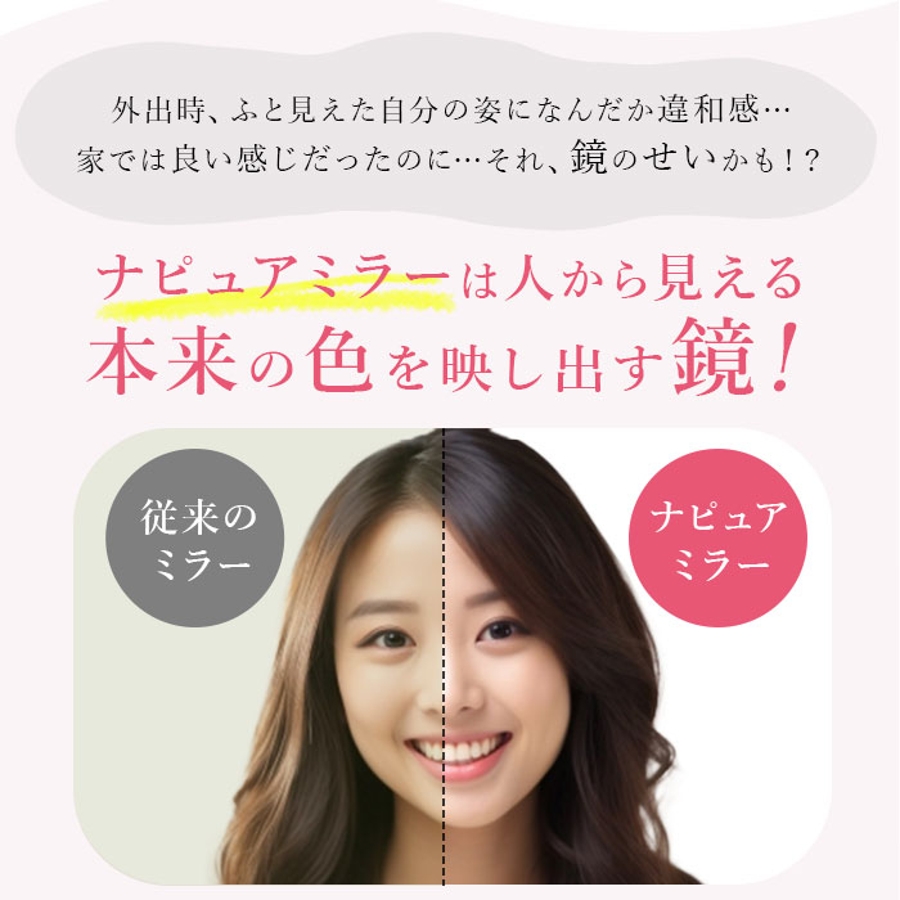 ・特許取得の鏡材(ナピュア)を使用。ガラスの色に影響されない自然で純粋な色表現により、肌本来の色を素直に映し出すのが魅力のミラー。