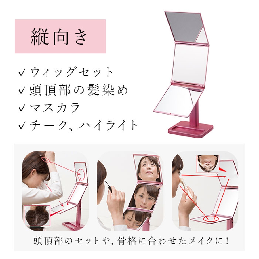 ・さらに下の鏡を覗くことで後頭部・つむじが映り、ウィッグの装着や後頭部の白髪染めにも便利。