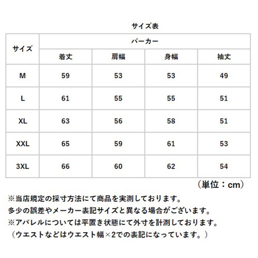| サイズ | Mサイズ / Lサイズ / XLサイズ / XXLサイズ / 3XLサイズ |