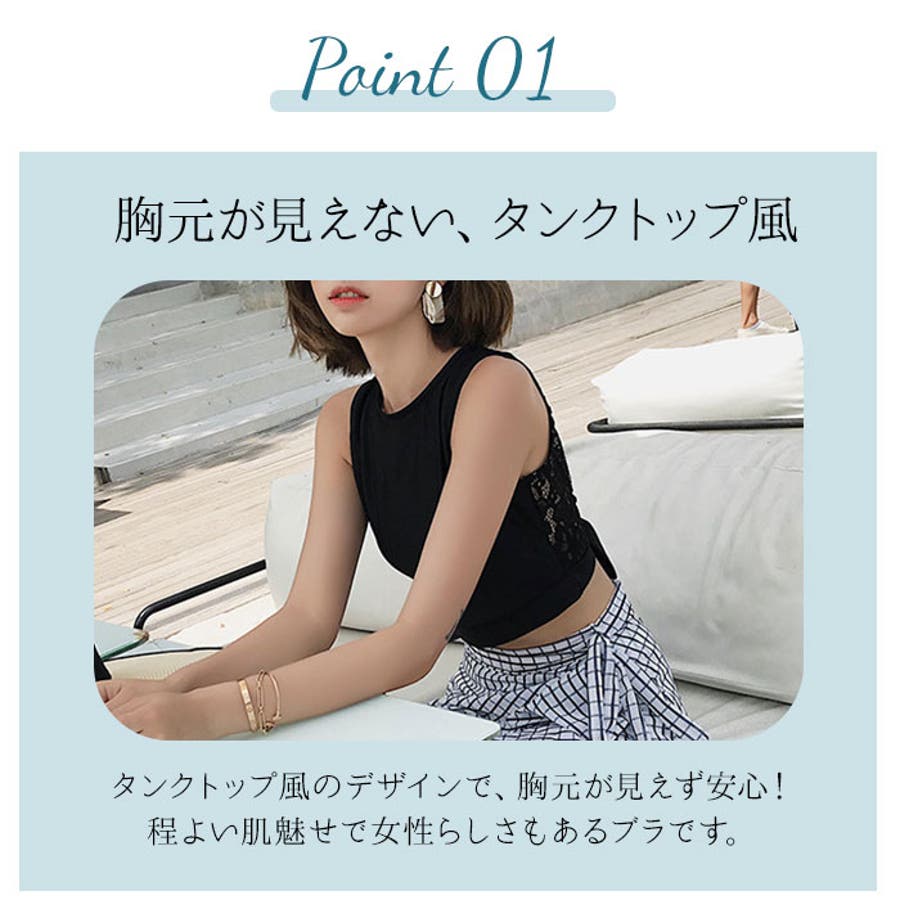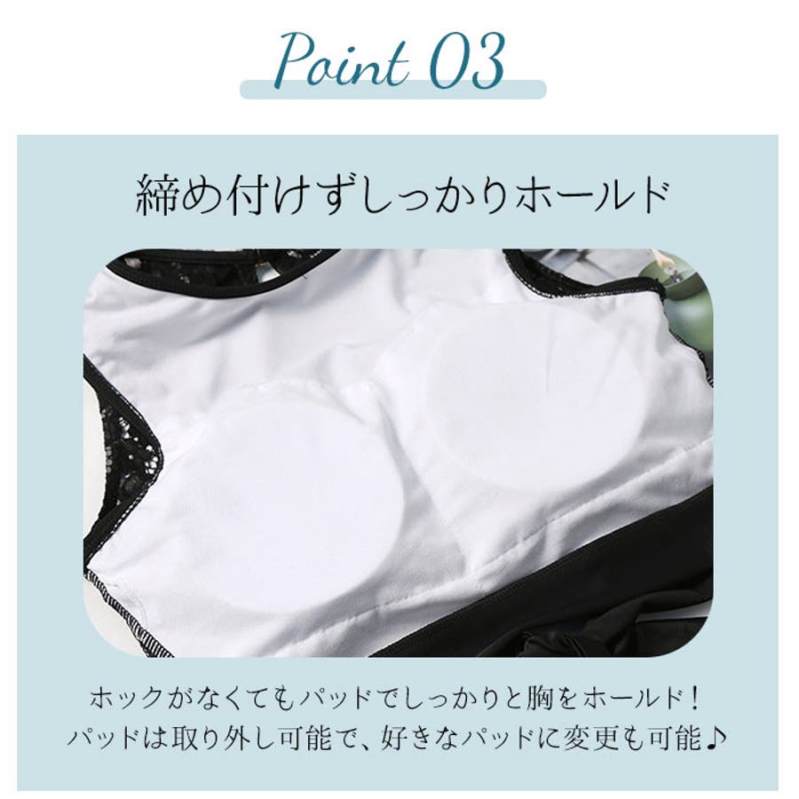 ・タンクトップ風のブラはホックのないタイプで締め付け感なし!バックのリボン結びでサイズの微調整も可能。
