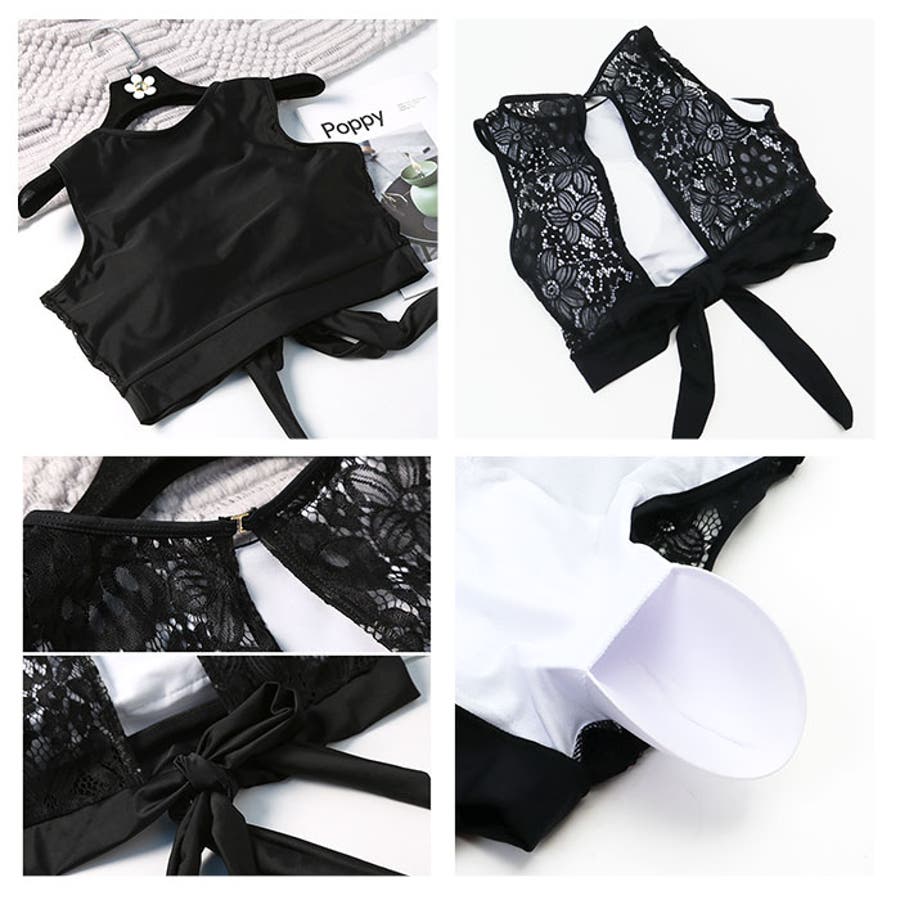 ・背面はレースの透け感と穴あき仕様が上品でセクシーに。