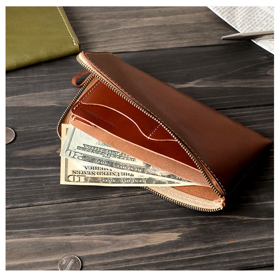 ・ヌメ革で少しツヤのあるこだわりの栃木レザー「フルベジタブルタンニングレザー」を採用した長財布。こだわりのメイド・イン・ジャパン製品。