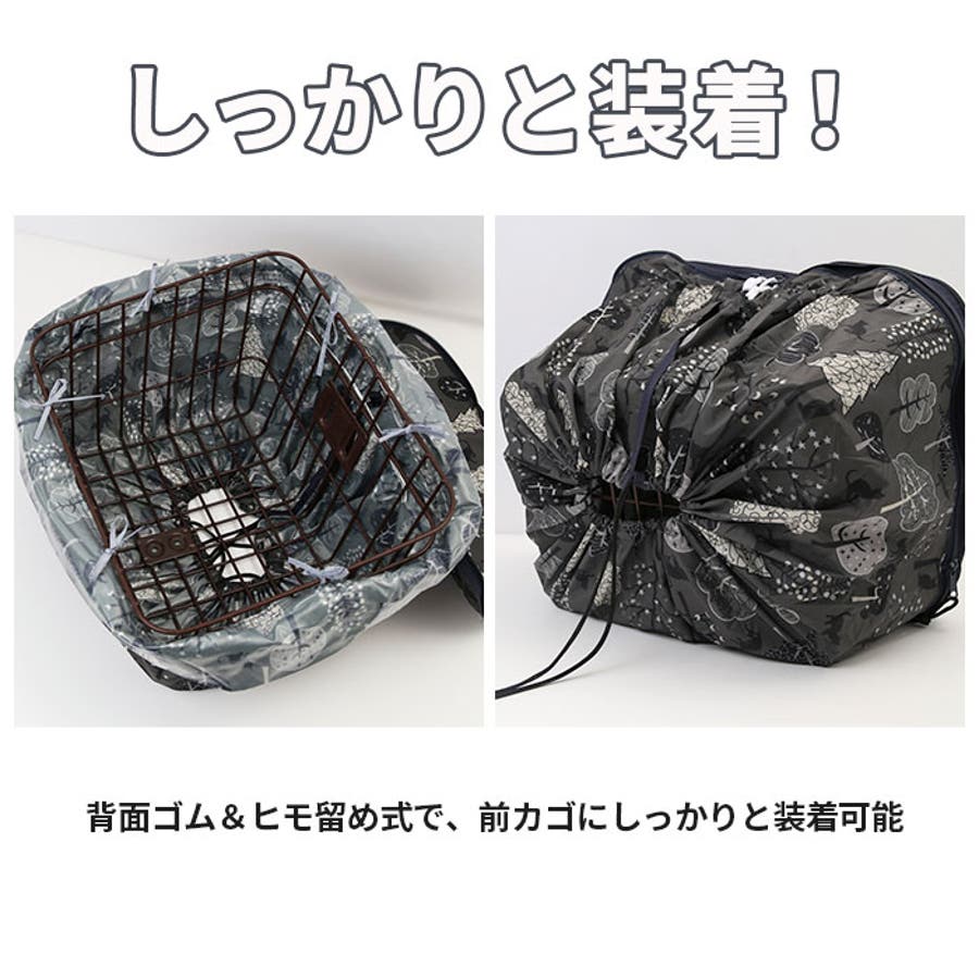 ・背面ゴム&ヒモ留め式で、前カゴにしっかりと装着可能。