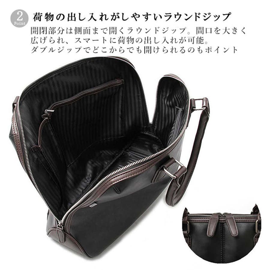 ・開閉部分は側面まで開くようにラウンド状にジップを配置。間口を大きく広げられ、スマートに荷物の出し入れが可能。