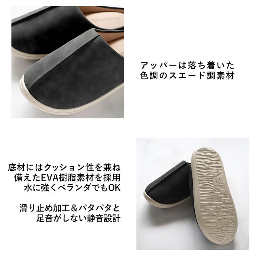 ・まあるい優しいカタチの履き口と、マットなスエード調素材がオシャレなルームスリッパ。