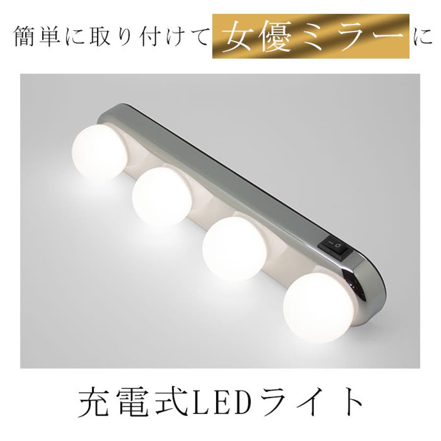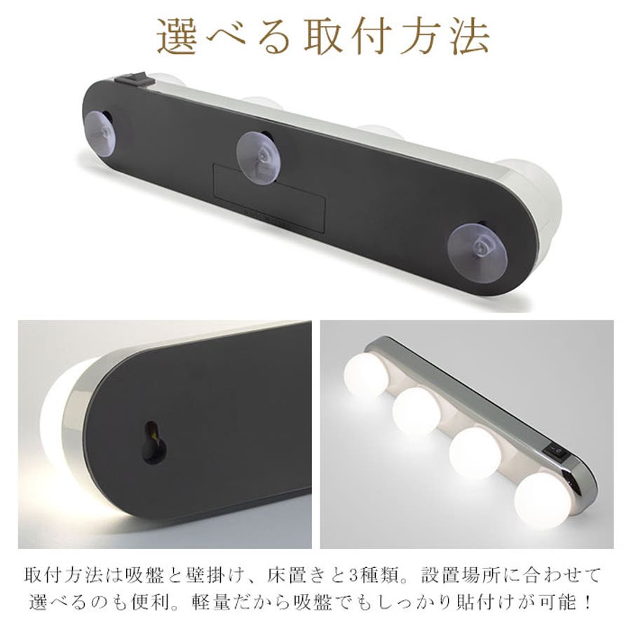 ・LEDライトを4つ搭載。鏡周りに設置すればお顔を明るく照らしてくれて、繊細なアイメイクもばっちりキマる♪