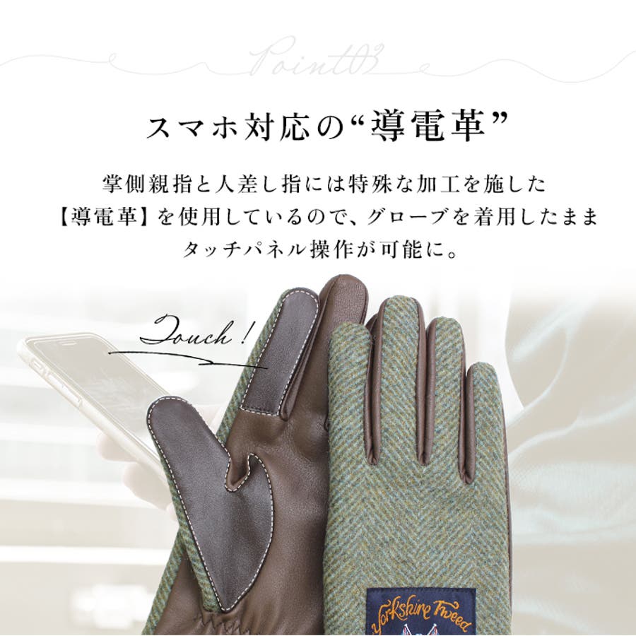 ・掌側親指と人差し指には特殊な加工を施した【導電革】を使用、グローブを着用したまま、タッチパネル操作も可能。
