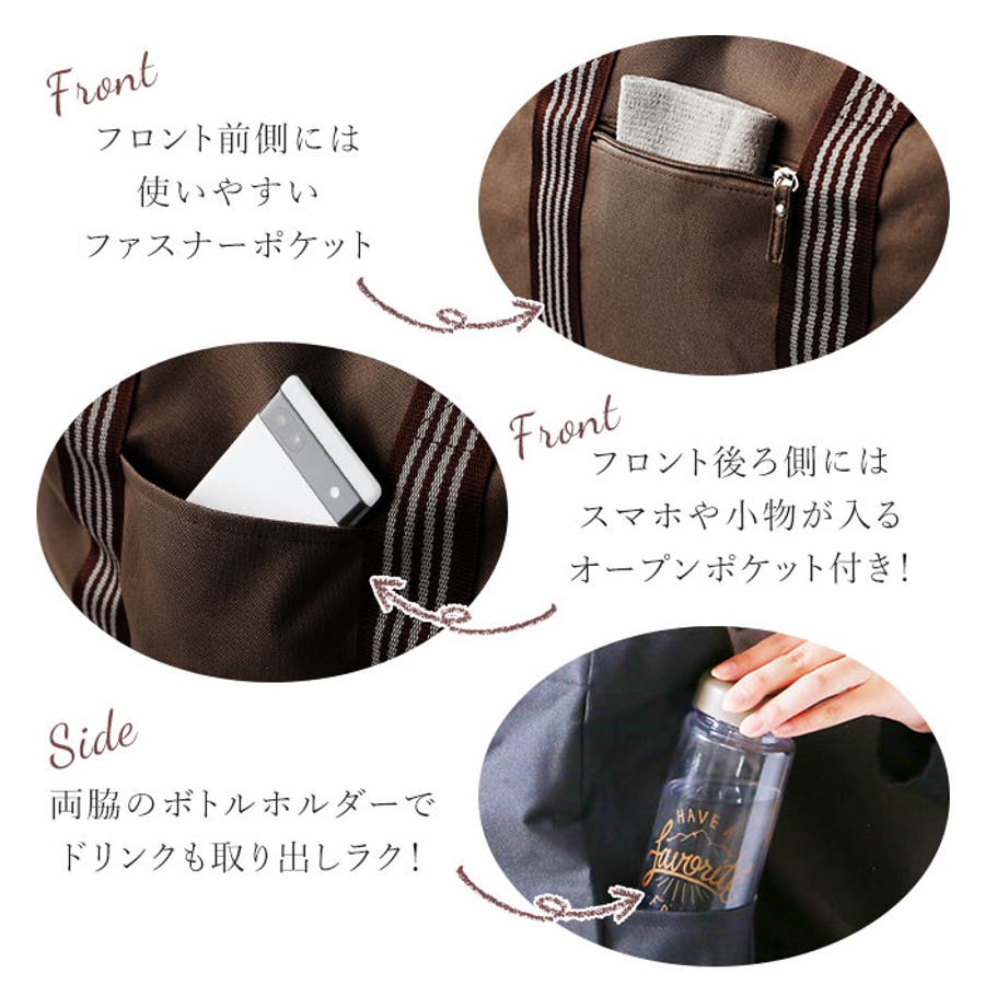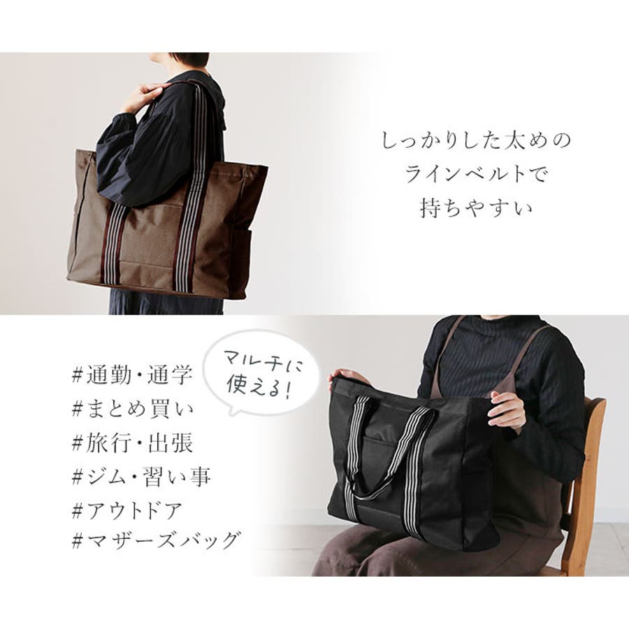 ラインベルトがアクセント♪大容量のシンプルなトートバッグです。