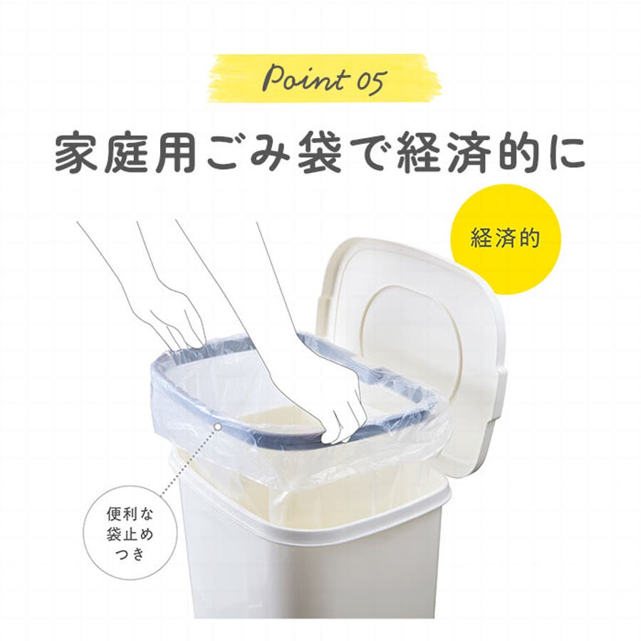・ゴミ袋は家庭用30Lサイズが使えて経済的。袋止め付なのも使いやすいポイント。