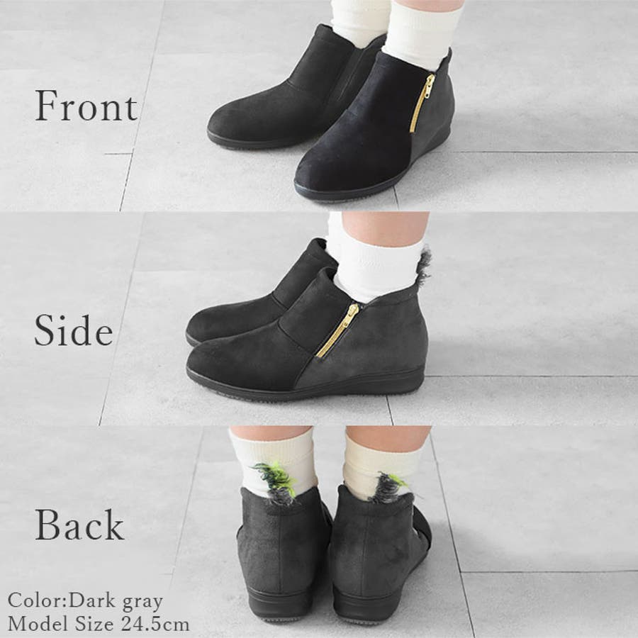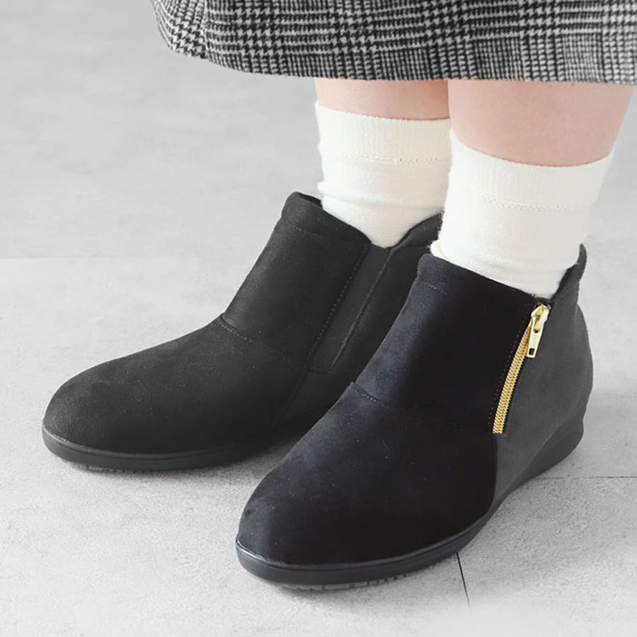 ・甲サイドの外側にスライドファスナー・内側にゴム素材を使用。急いでいる時でも脱ぎ履きがスムーズ!