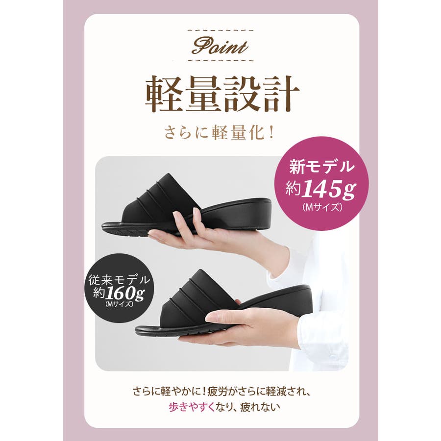 ・従来モデル約160g→新モデル約145gと、もっと軽やかに!(※Mサイズの片足の重さ)